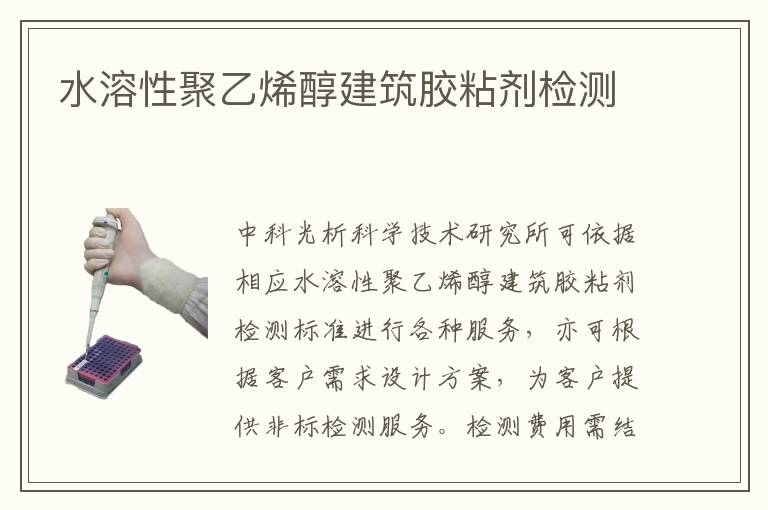 關(guān)鍵詞:水溶性聚乙烯醇建筑膠粘劑測(cè)試儀器,水溶性聚乙烯醇建筑膠粘劑測(cè)試標(biāo)準(zhǔn),水溶性聚乙烯醇建筑膠粘劑測(cè)試案例