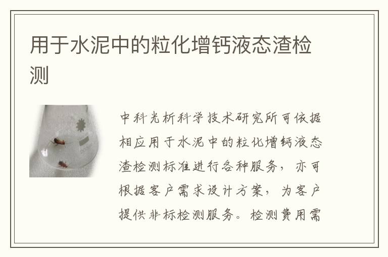 關(guān)鍵詞:用于水泥中的?;鲡}液態(tài)渣測試機構(gòu),用于水泥中的粒化增鈣液態(tài)渣測試周期,用于水泥中的?;鲡}液態(tài)渣測試范圍