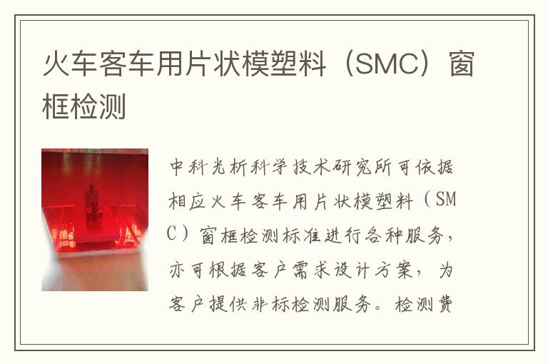關(guān)鍵詞:火車客車用片狀模塑料(SMC)窗框測試標(biāo)準(zhǔn),火車客車用片狀模塑料(SMC)窗框測試機(jī)構(gòu),火車客車用片狀模塑料(SMC)窗框項目報價
