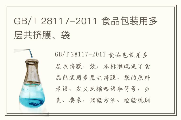 關(guān)鍵詞:GB/T 28117-2011 食品包裝用多層共擠膜、袋