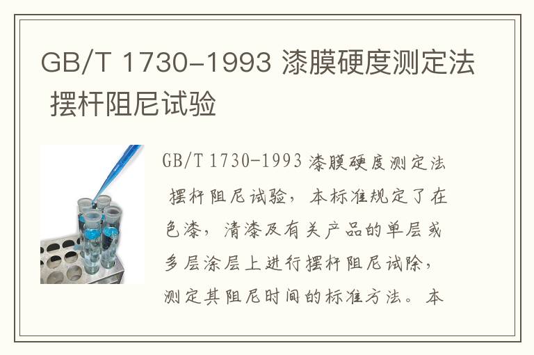 關(guān)鍵詞:GB/T 1730-1993 漆膜硬度測(cè)定法 擺桿阻尼試驗(yàn)