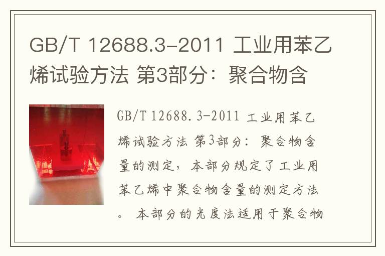 關(guān)鍵詞:GB/T 12688.3-2011 工業(yè)用苯乙烯試驗方法 第3部分:聚合物含量的測定