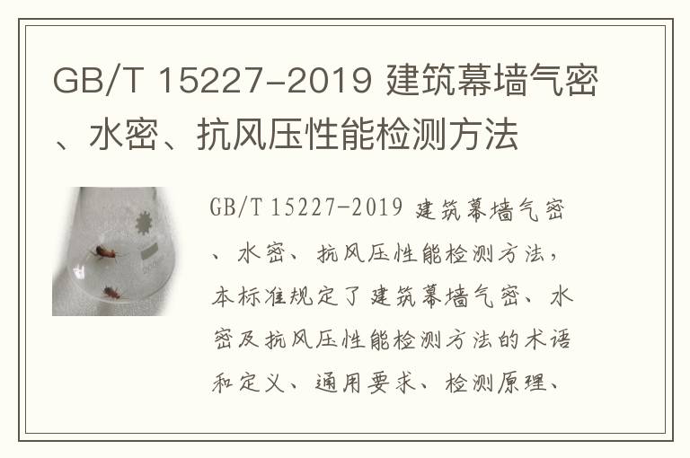 關(guān)鍵詞:GB/T 15227-2019 建筑幕墻氣密、水密、抗風(fēng)壓性能檢測(cè)方法