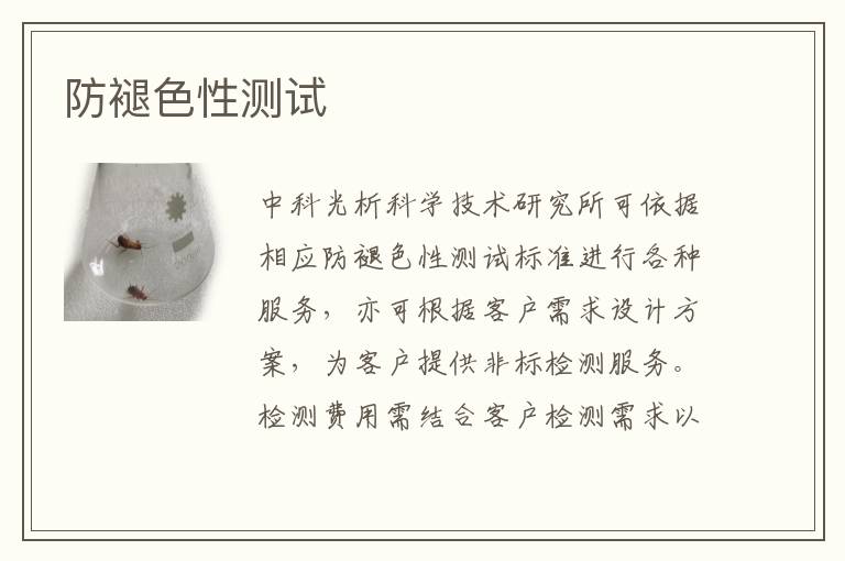 防褪色性測試需結合標準方法與正規(guī)設備,具體流程如下: