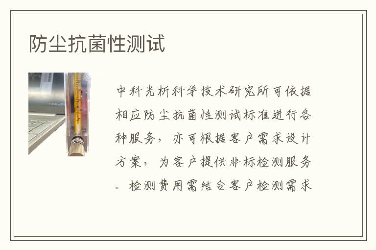 防塵抗菌性測試通常分為兩大模塊:防塵性能測試與抗菌性能測試,每個模塊包含多個具體檢測項目。