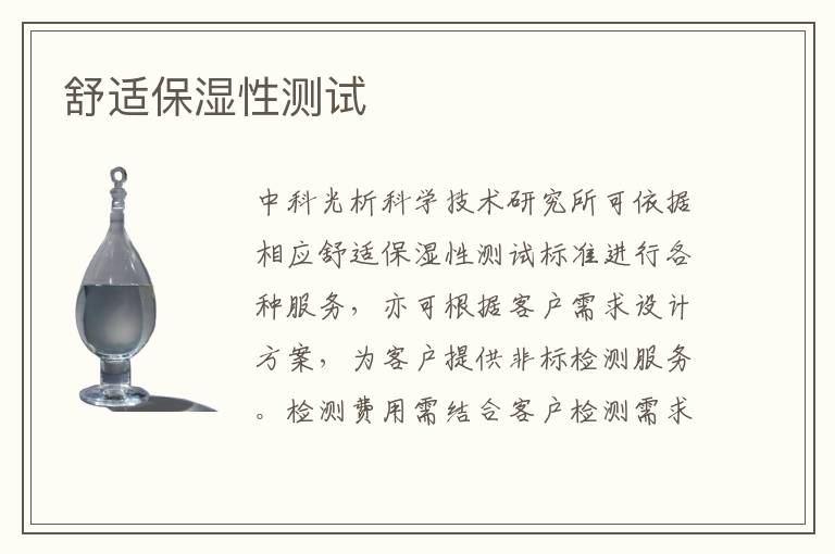 隨著消費(fèi)者對(duì)產(chǎn)品體驗(yàn)需求的提升,舒適保濕性成為紡織、化妝品、醫(yī)療用品等領(lǐng)域的關(guān)鍵性能指標(biāo)。舒適保濕性測(cè)試通過量化材料或產(chǎn)品的保濕能力、透氣性、摩擦舒適度等參數(shù),評(píng)估其在真實(shí)使用場(chǎng)景下的綜合表現(xiàn)。這類測(cè)試不僅關(guān)乎用戶體驗(yàn),更直接影響產(chǎn)品功能性設(shè)計(jì)及市場(chǎng)競(jìng)爭(zhēng)力。本文將系統(tǒng)解析舒適保濕性測(cè)試的核心要素,為相關(guān)行業(yè)提供技術(shù)參考。