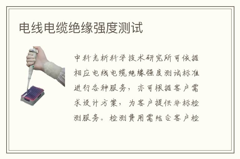 關(guān)鍵詞:電線電纜絕緣強(qiáng)度測(cè)試測(cè)試標(biāo)準(zhǔn),電線電纜絕緣強(qiáng)度測(cè)試測(cè)試周期,電線電纜絕緣強(qiáng)度測(cè)試測(cè)試儀器