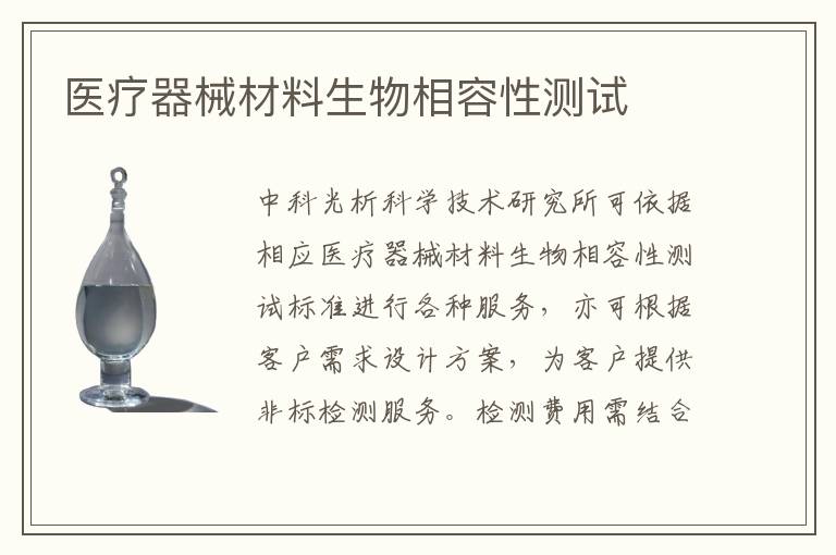 關(guān)鍵詞:醫(yī)療器械材料生物相容性測(cè)試測(cè)試范圍,醫(yī)療器械材料生物相容性測(cè)試項(xiàng)目報(bào)價(jià),醫(yī)療器械材料生物相容性測(cè)試測(cè)試案例