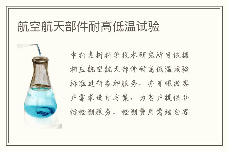 關(guān)鍵詞:航空航天部件耐高低溫試驗測試機(jī)構(gòu),航空航天部件耐高低溫試驗測試周期,航空航天部件耐高低溫試驗測試方法
